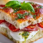 Ein schnelles und köstliches Focaccia-Sandwich mit frischen Tomaten, cremigem Mozzarella und aromatischem Basilikum, ideal für jede Gelegenheit.